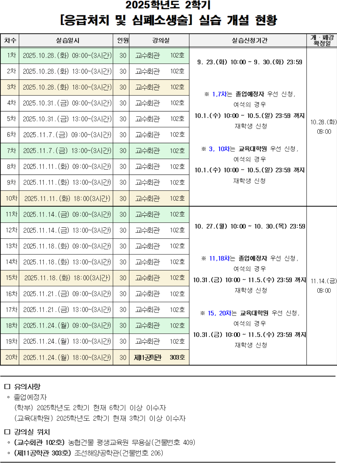 [공통] 2025학년도 2학기 「응급처치 및 심폐소생술 실습」 실시 안내